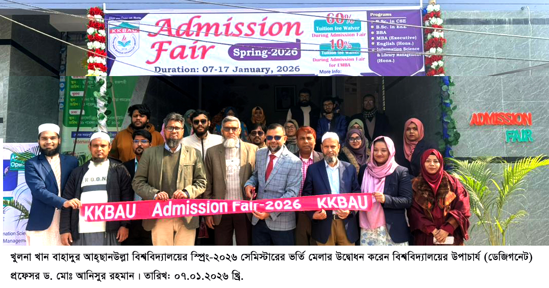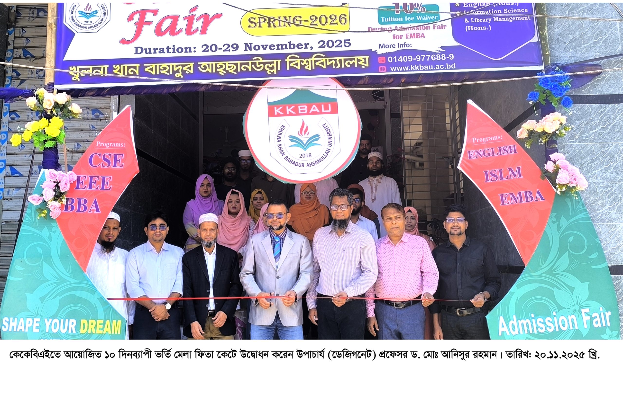 Khulna Khan Bahadur Ahsanullah University (KKBAU) was established by the Dhaka Ahsania Mission (DAM) in 2018. Dhaka Ahsania Mission is a non-profit voluntary organization dedicated to social development in Bangladesh. The Mission was founded in 1958 by Khan Bahadur Ahsanullah, a distinguished educationist and social reformer of undivided India. Inspired by his vision of a just and enlightened society enriched with moral and spiritual values, KKBAU strives to provide quality higher education and foster research and innovation.